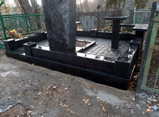 Сразу же после установки надгробья мы приступаем а облицовке бетонного периметра плитами из полированного гранита.